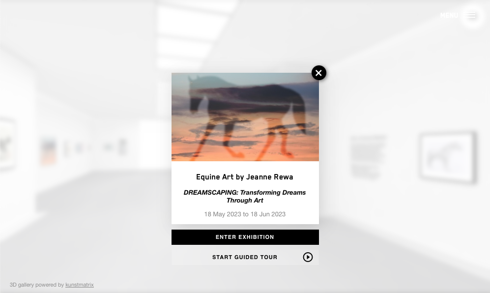 Online solo art show of equine art by Jeanne Rewa that ran May 18-June 18, 2023, with an online live opening event May 18, 6-7pm Eastern time, and a virtual gallery open 24/7.